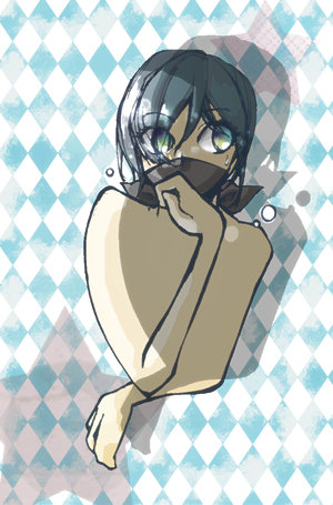 それから拍手とても嬉しいです! 嬉しいテンションに乗って文章を書きたいのに、まとまった時間が取れないのが口惜しい! うう、文章が書きたい……書きたい……と言いながらなぜ自分はマンガのコマ割りを練習しているのかと自問自答しつつ、デジタル練習のらくがきを一枚←やってることに一貫性がない。青い子です。口元が出ています。