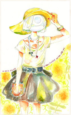 スケッチブックが変わった勢いであれやこれやらくがきをしていたうちから、一枚。マリーゴールドの爽やかな光に刺激を受けて描いたのですが、なんだか初夏の日差しの感じられる一枚になってしまいました。(服装は雑誌を参考にしました。)